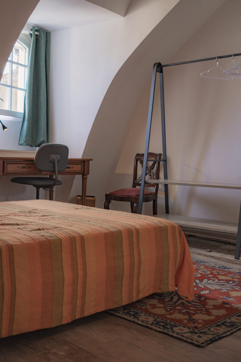 Niché sous les toits d’un immeuble de la fin du XIXème siècle, cet appartement sous combles recélait un potentiel indéniable — celui du charme de l’ancien, des volumes singuliers que seuls les derniers étages savent offrir. Mais pour répondre à sa nouvelle vocation de colocation à trois chambres, une transformation complète et réfléchie s’imposait, structurée autour de trois ambitions complémentaires.